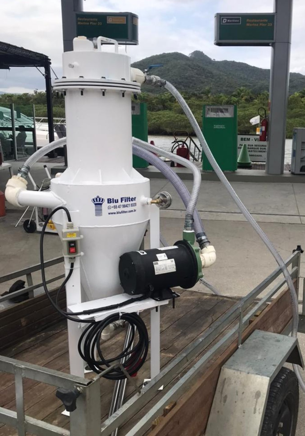 A funcionalidade da máquina de diálise da Blu Filter, pode ser resumida em uma Sucção de Diesel contaminado do Tanque, uma Pré Filtração (5 Micras), Bombeamento e uma segunda Filtração (1 Micra) pressurizada desta vez em menor malha mais com maior superfície de filtração, com retorno ao tanque contaminado.