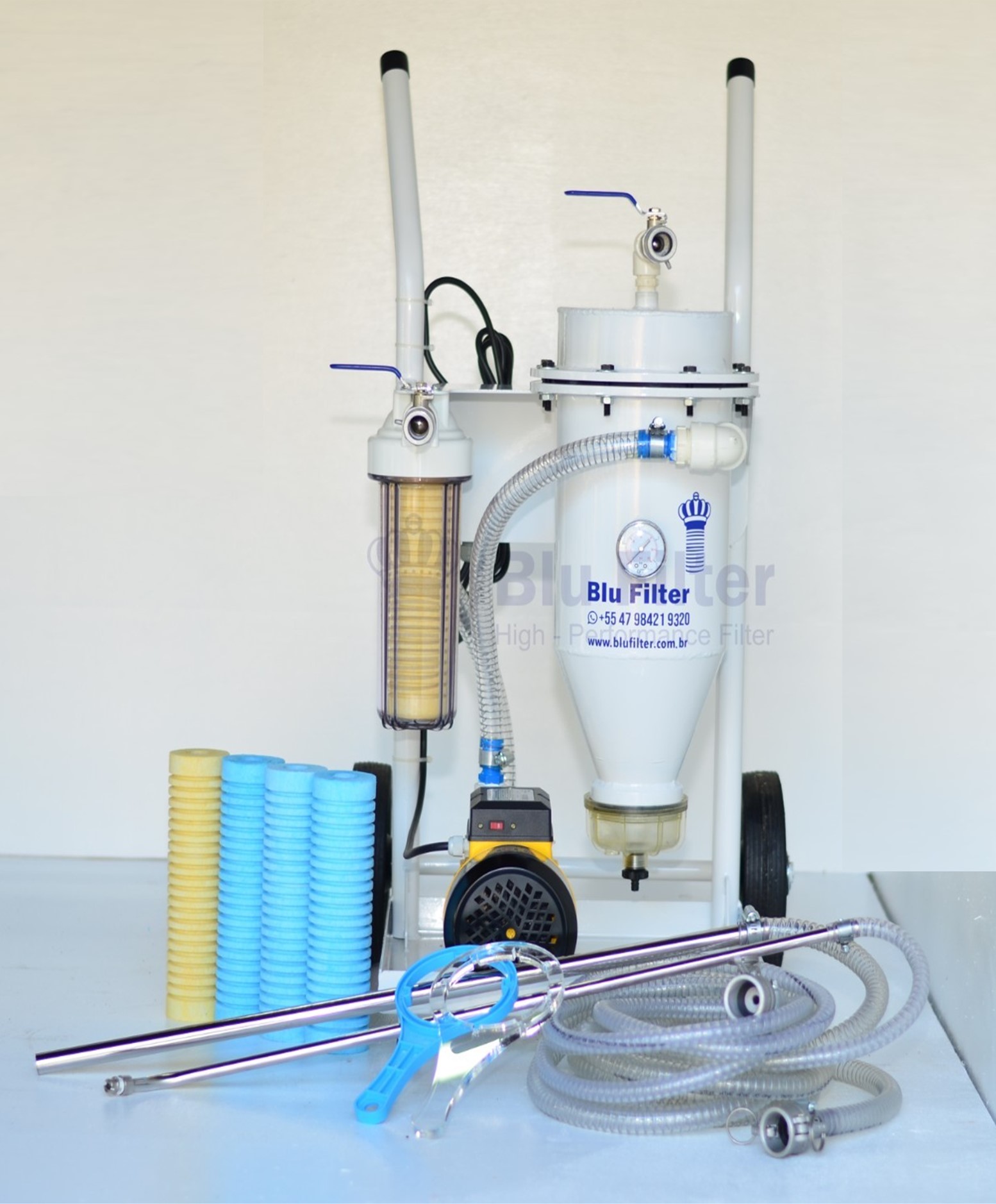 O Equipamento de filtração para diesel faz limpeza de tanques, ideal para aplicações em veículos leves e pesados, fora de estrada, embarcações e grupos geradores. Sua capacidade de alta performance é de 5.400 L/h, atendendo tanques de abastecimento com capacidade de até 15.000 litros.